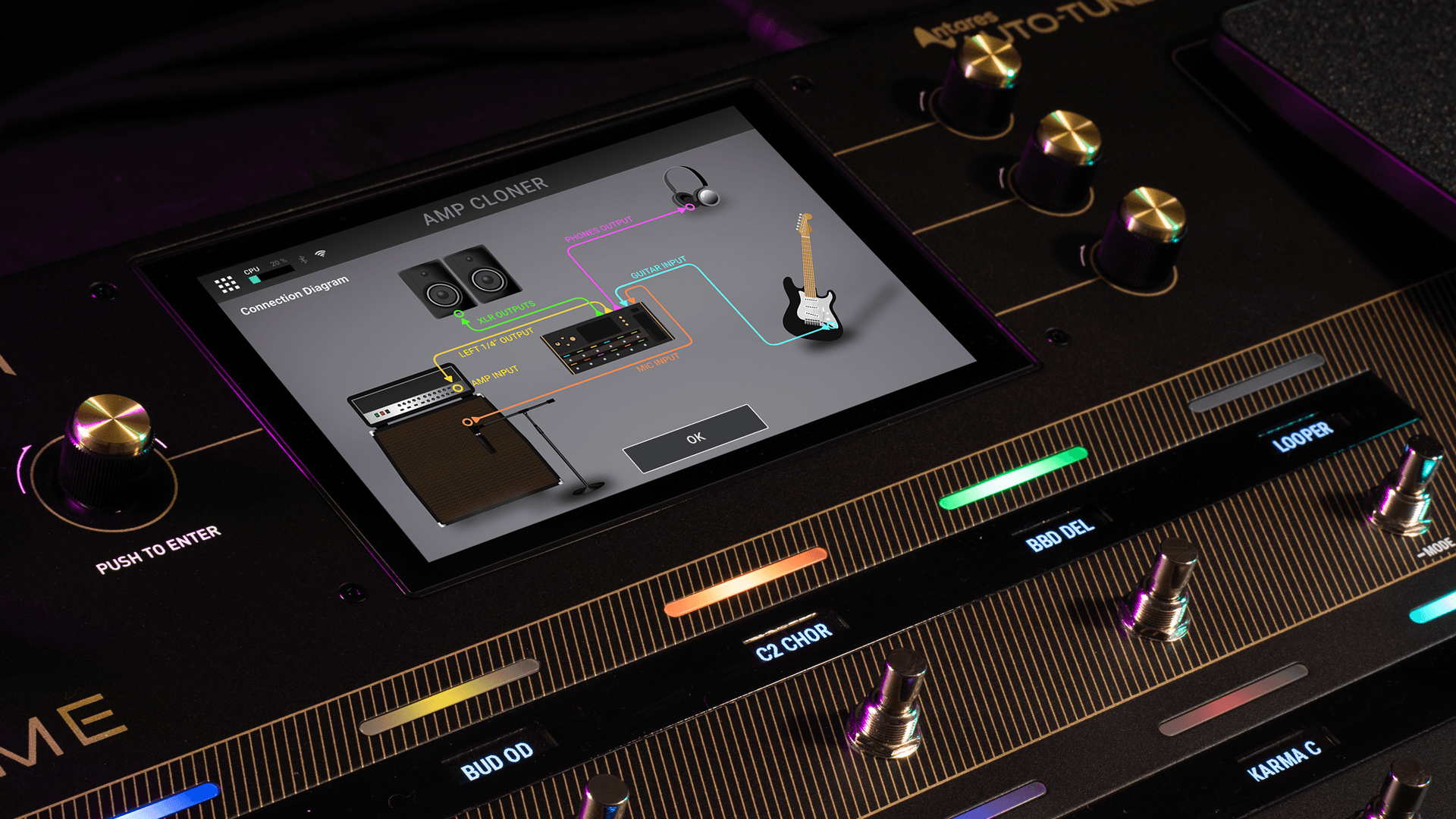 The HeadRush Prime includes an ever-expanding library of on-board guitar FX, amp, cab and microphone emulations, amp clones, impulse responses, as well as a full suite of vocal FX (including the industry-standard Antares Auto-Tune®)! These are premium emulations of the most cherished guitar and studio gear with unprecedented accuracy and jaw dropping natural dynamic response. This library is expanded on a regular basis via firmware updates (available via onboard Wi-Fi connection, or USB connection to Mac/ PC) that add new features based on user requests and feedback.