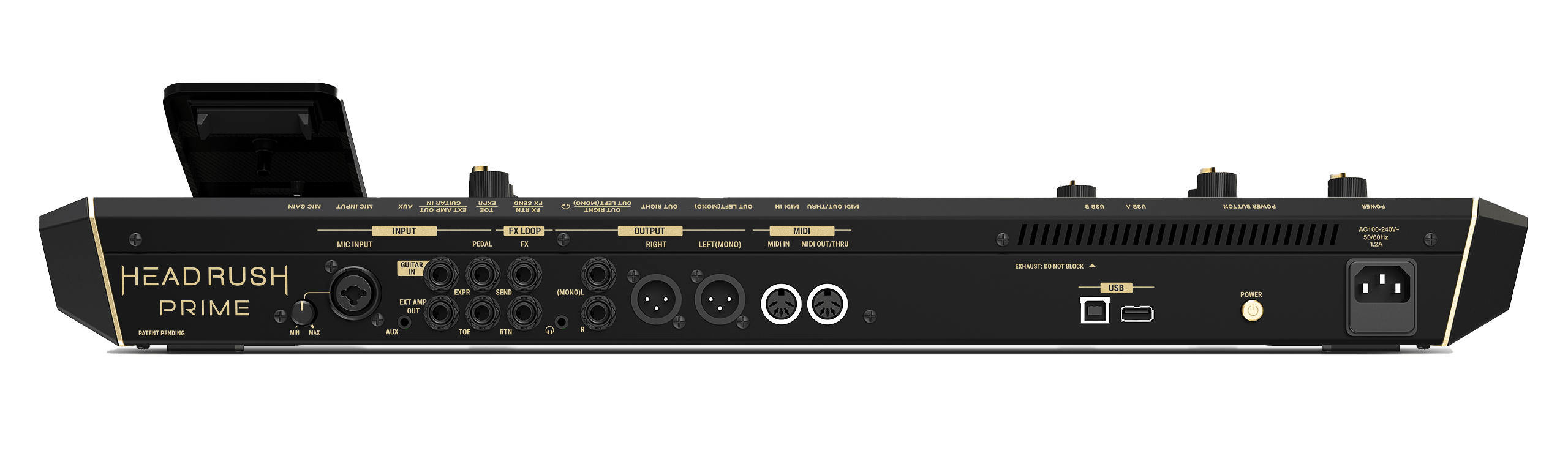 The HeadRush Prime assimilates seamlessly into your current rig with all the connections you need to handle any performance situation. The rear panel of Prime is packed with inputs and outputs, including a ¼-inch input for guitars, Combo XLR+¼-inch input with switchable 48V phantom power for microphones, (2) XLR outputs with switchable ground lift, (2) ¼-inch TRS outputs switchable between amp or line level, a ⅛-inch headphones output, and 5-Pin MIDI input and output connections. The Prime also features an onboard ¼-inch stereo FX loop to integrate pedals and outboard gear at any point in your signal chain and allows for advanced integration into your rig via the four-cable method. Additionally, there is a ¼-inch external amp output that can be used to change between clean and dirty channels or toggle other footswitch settings on a connected traditional guitar amplifier. In addition to the onboard Wi-Fi and Bluetooth audio connectivity, the Prime also features a USB-A input for importing/exporting files directly from/to a USB drive, as well as connecting external USB-MIDI controllers. The HeadRush Prime unites your existing equipment while opening a world of new sonic possibilities.